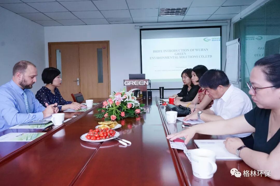 6月20日法国驻武汉总领事馆商务投资处主任孙雅俊(Emmanuel POLLET)先生拜会金沙总站6165官方网站,湖北省环境保护产业协会李汉武秘书长陪同考察。金沙总站6165app环保董事长胡丽军,总经理姜琦进行了热情接待。